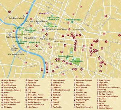 Главная достопримечательность города — Большой королевский дворец, резиденция тайских монархов с великолепным парком и зданиями в традиционном тайском стиле. Рядом с дворцом установлены гигантские обрядовые качели Лак-Муанг, два огромных тиковых столба с резной перекладиной. Севернее королевской резиденции расположен Храм изумрудного Будды, соединённый с ней воротами. В нём хранится одна из святынь буддизма, знаменитая статуя сидящего на золотом алтаре Будды. Всего же в городе около 400 великолепных храмов, самые знаменитые среди них — большой храмовый комплекс Ват-По с гигантской статуей лежащего Будды, Мраморный храм и храм Зари.